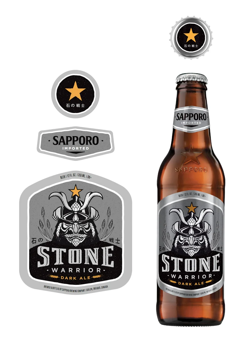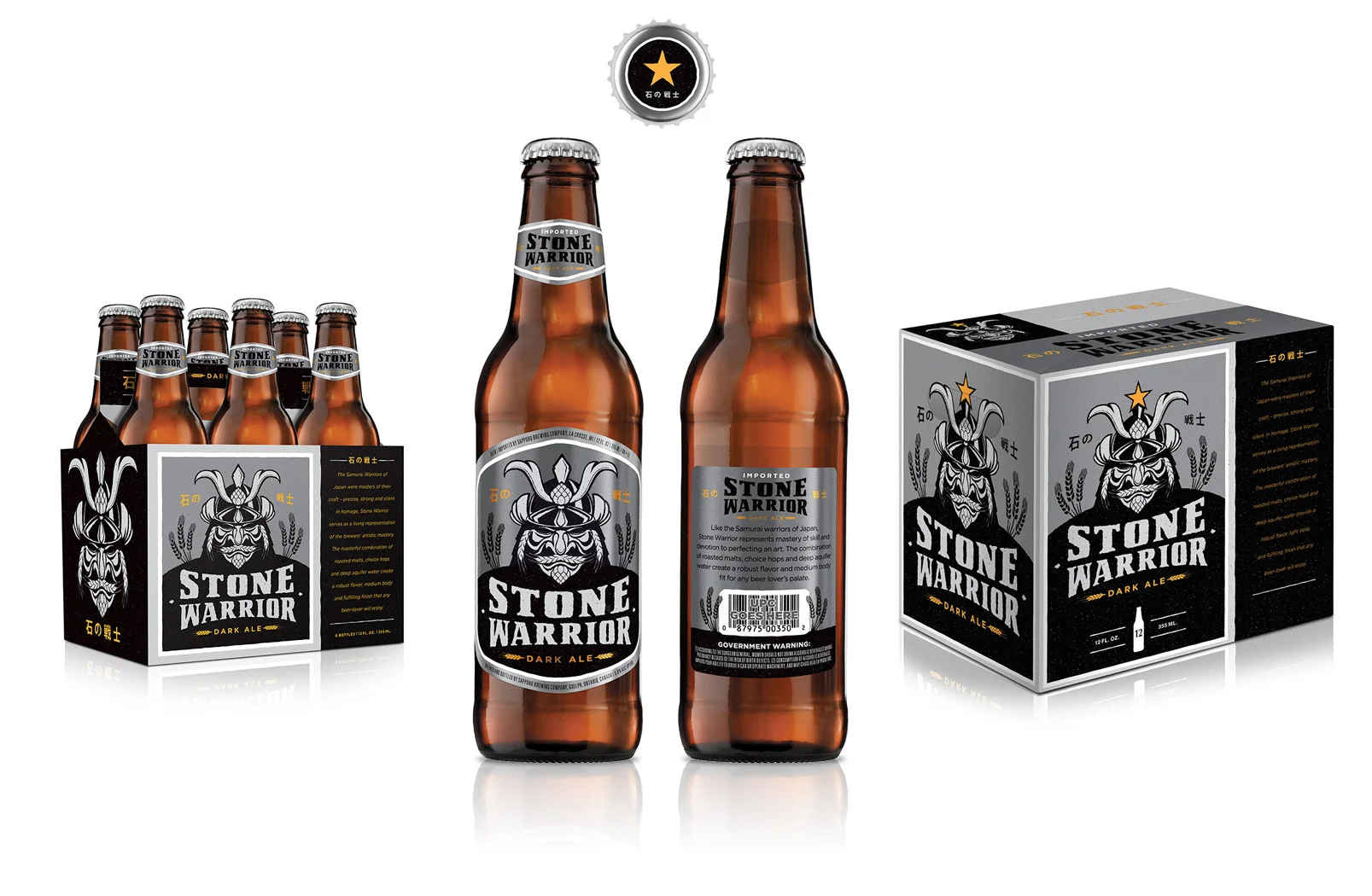 Stone Warrior struck the ideal balance of Japanese heritage and an American craft-beer naming structure in our clients’ opinion. The Stone Warrior illustration has obvious visual ties to the iconic Japanese samurai but also possesses a headdress constructed of barley and hops to make the figure more ownable to a beer brand.